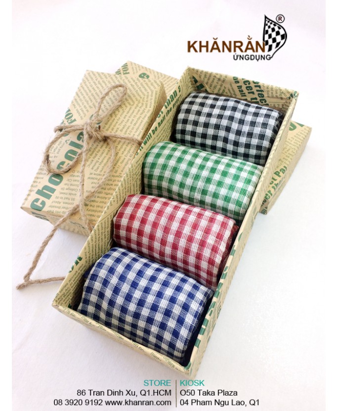 Combo khăn rằn Nam bộ gồm 05 khăn (khách được lựa chọn màu tùy thích) 120x60cm. Khăn làm theo tiêu chuẩn sợi hồ truyền thống và được đóng hộp cẩn thận.